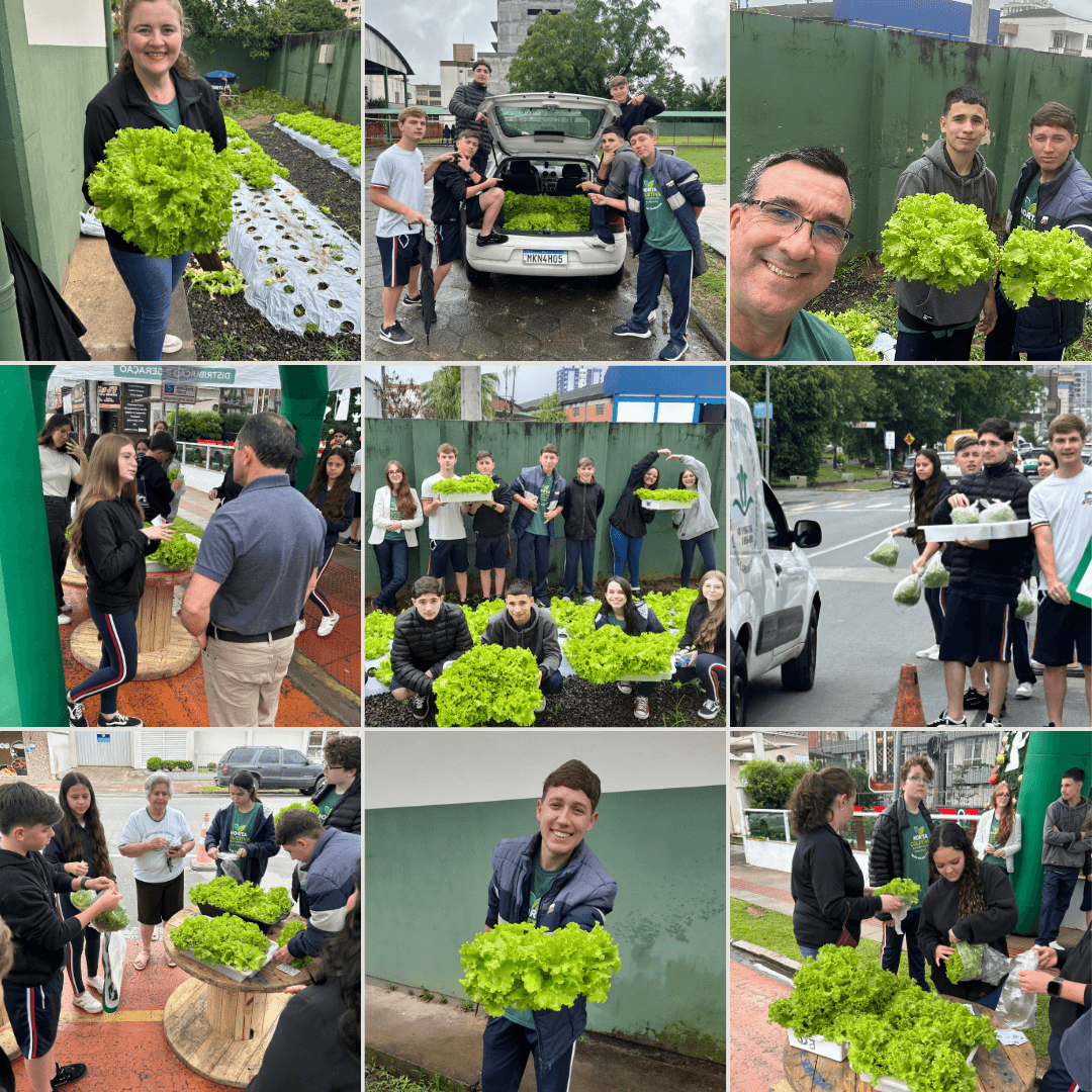 Com o sistema funcionando perfeitamente e os canteiros em plena produção, o encerramento se transformou em um momento especial. No pátio da escola, alunos e equipe técnica realizaram a entrega de alfaces totalmente gratuitas para as famílias da comunidade - alimento cultivado com dedicação, conhecimento e respeito ao meio ambiente.
