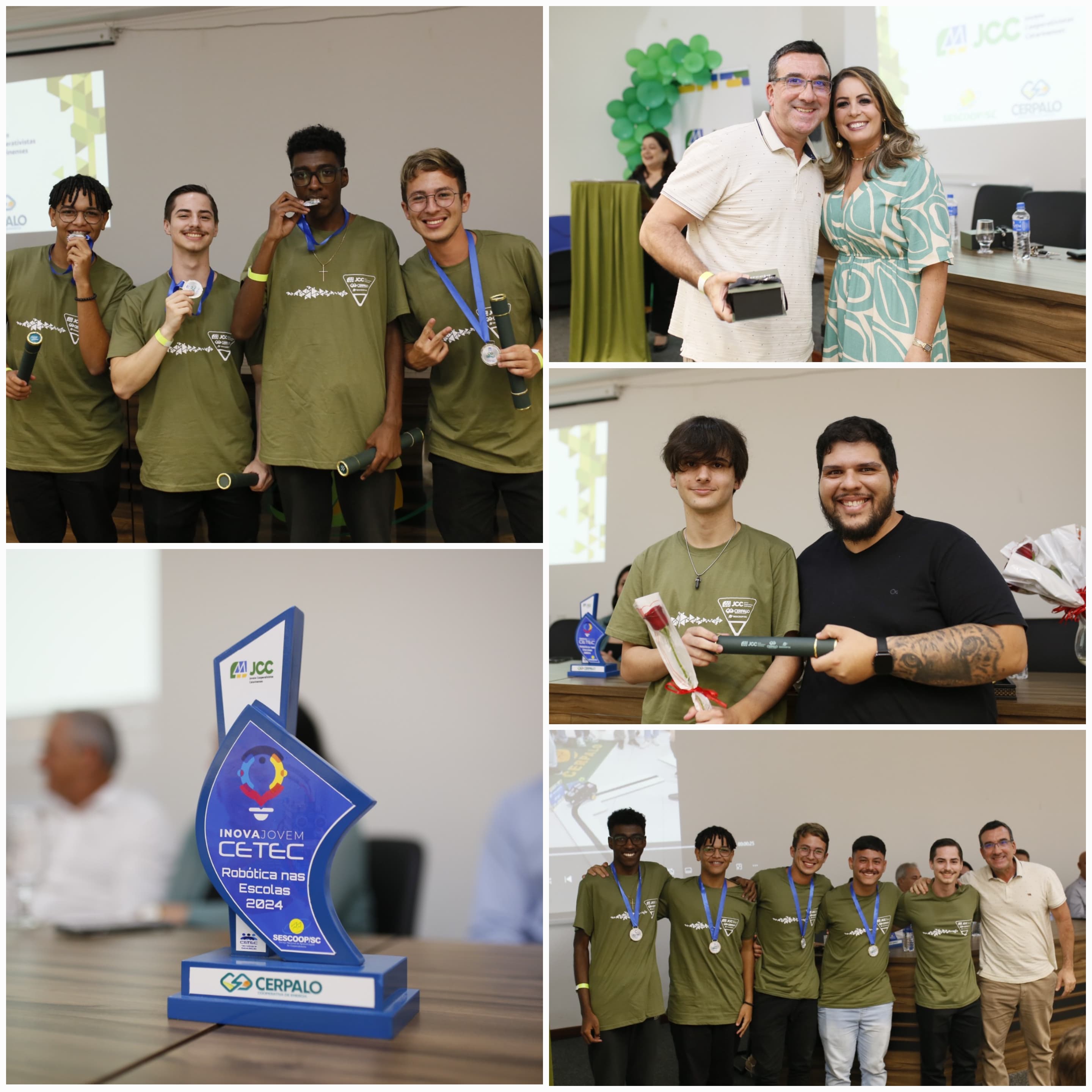 No último dia 21 de outubro, o CETEC teve a honra de participar da formatura dos jovens do programa Jovens Cooperativistas Catarinenses da CERPALO, uma iniciativa apoiada pelo SESCOOP SC. Representando o CETEC, os professores Marcelo e Maurício estiveram presentes para entregar os prêmios de terceiro, segundo e primeiro lugar às equipes que se destacaram na competição do carrinho seguidor de linha, atividade desenvolvida no módulo de robótica educacional do programa.