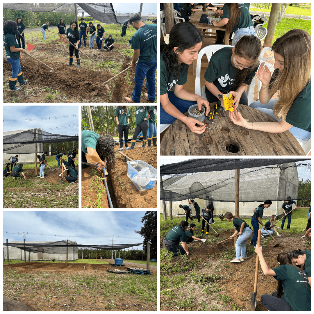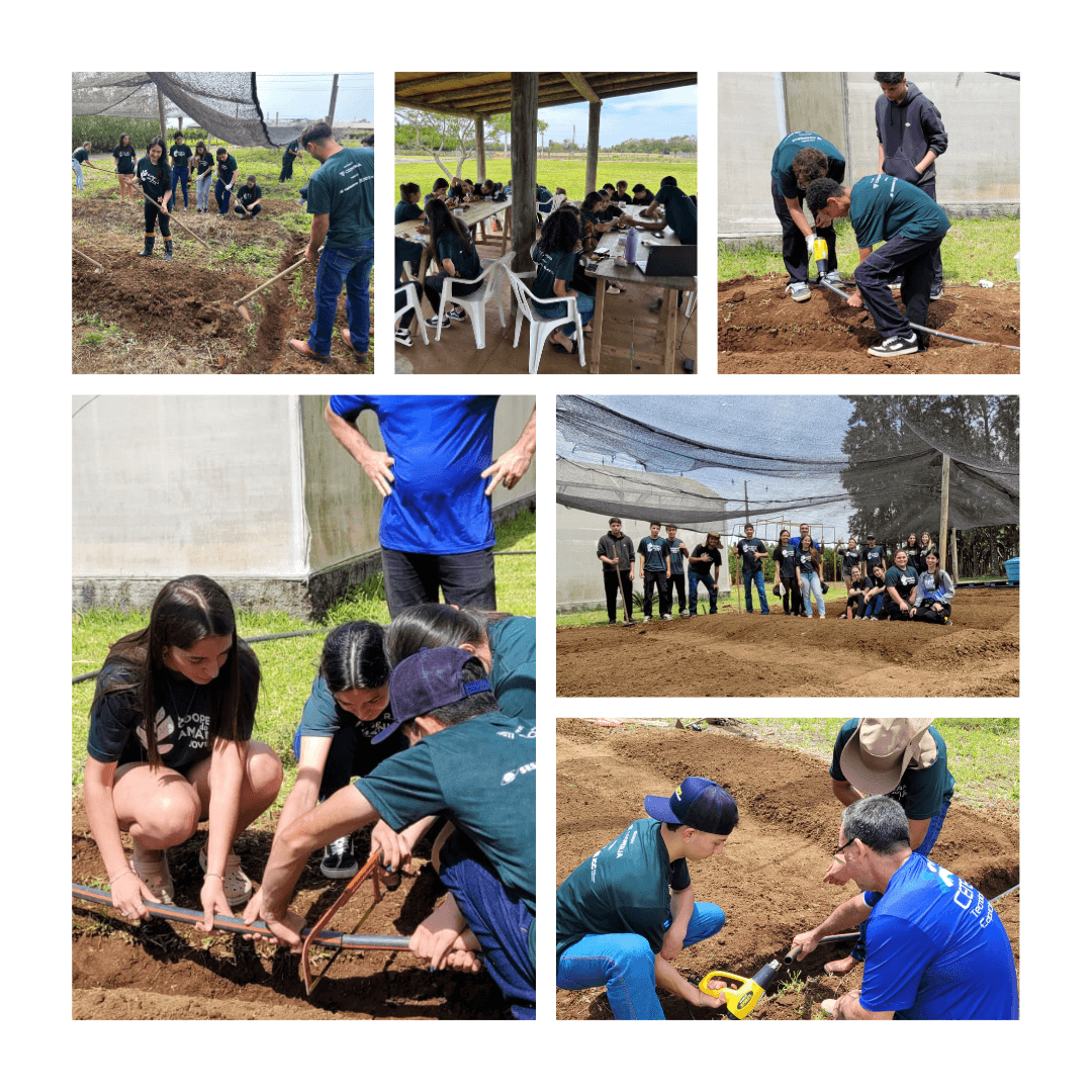 Durante o período da manhã, os participantes realizaram a preparação do solo e começaram a instalar o sistema de irrigação por mangueiras, etapa essencial para garantir a eficiência do cultivo. Foi um momento de muito trabalho em equipe, onde os alunos mostraram disposição e comprometimento, unindo agilidade e qualidade em cada tarefa.