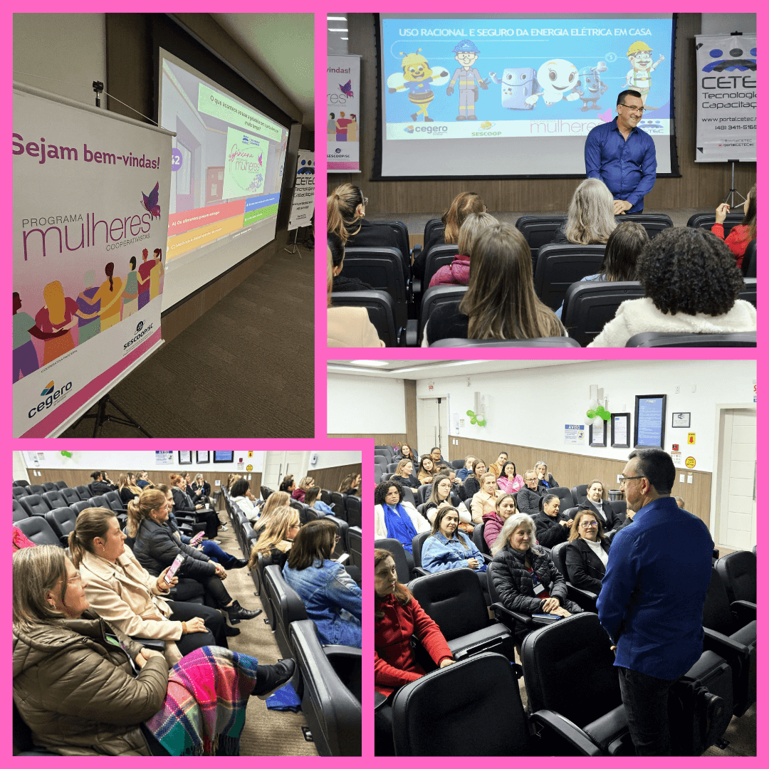 Nos dias 26 de agosto e 02 de Setembro de 2025, o auditório da CEGERO, em São Ludgero, foi palco de dois encontros especiais do programa Mulheres Cooperativistas, realizado com apoio do SESCOOP/SC e em parceria com o CETEC. O objetivo da iniciativa foi promover conhecimento, integração e protagonismo feminino dentro do cooperativismo, trazendo temas práticos e atuais sobre energia elétrica.
