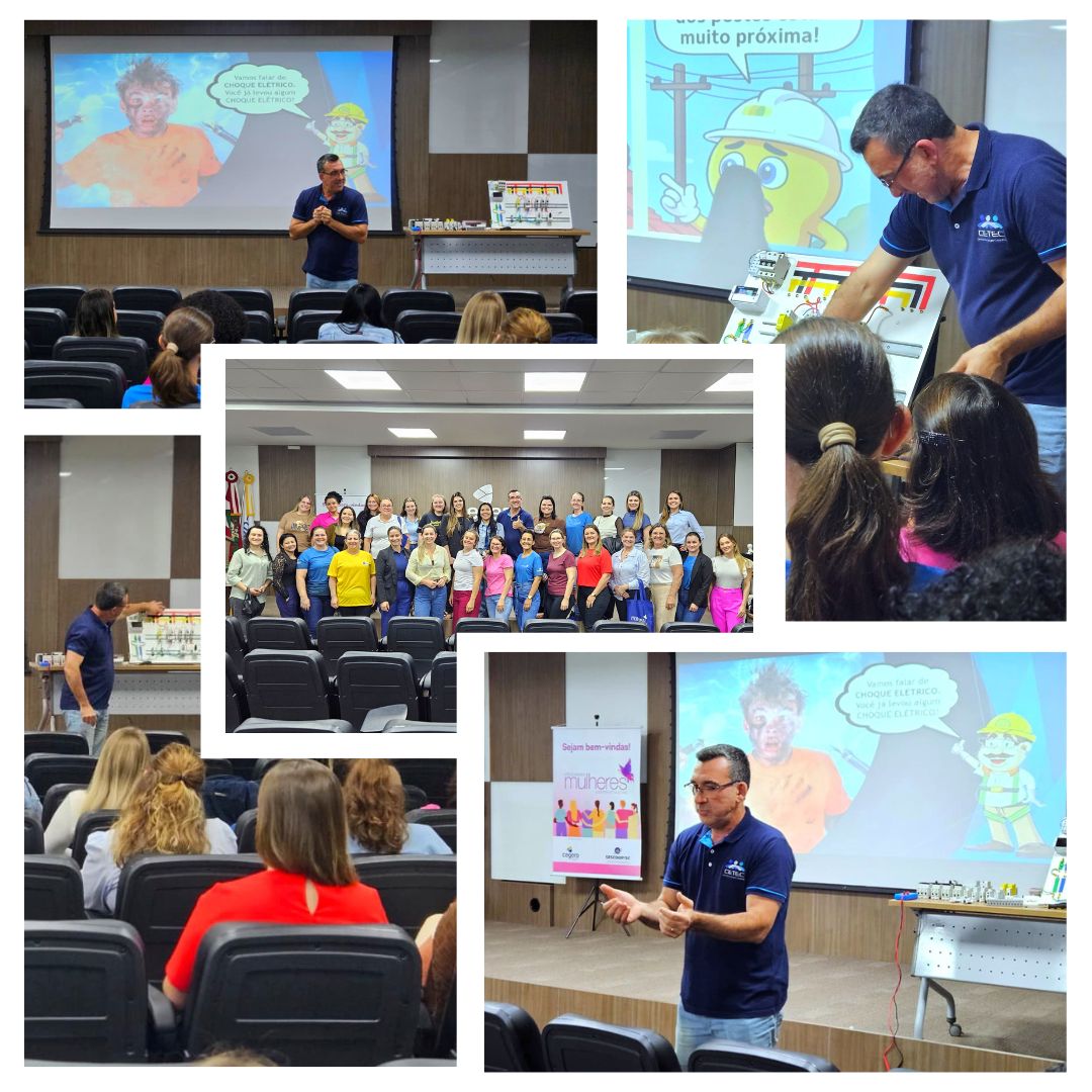 Já o segundo encontro teve como tema central a Segurança nas Instalações Elétricas. As participantes aprenderam sobre a função dos principais dispositivos de proteção ? Disjuntor, DR e DPS ?, além de conceitos importantes como tensão de passo, riscos do choque elétrico, perigos no uso de adaptadores e riscos de incêndios em instalações.