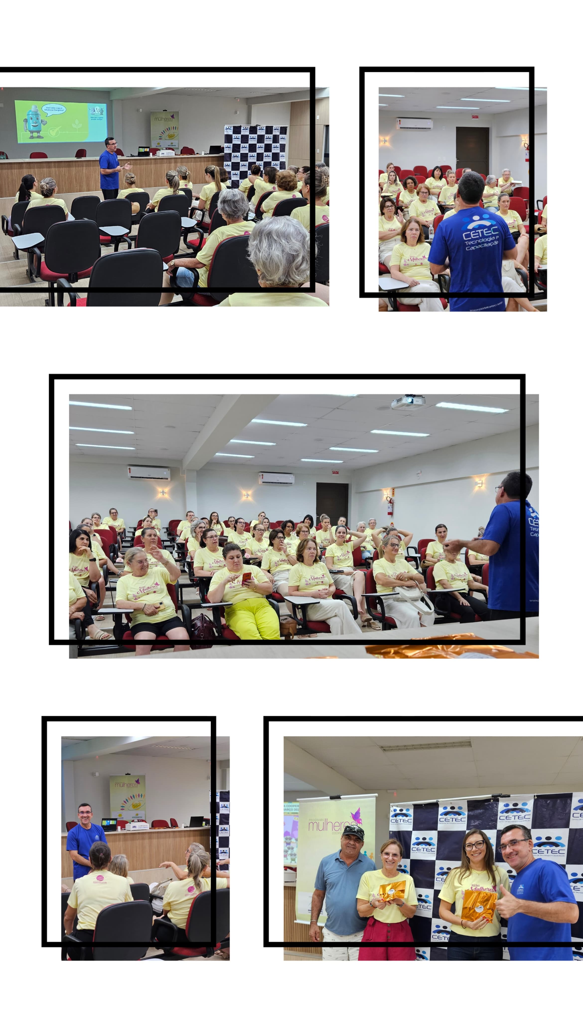 A equipe do CETEC conduziu uma palestra dinâmica e interativa sobre o uso racional e seguro da energia elétrica, trazendo informações valiosas para o dia a dia de forma leve e acessível. O bate-papo foi recheado de brincadeiras, participação ativa das mulheres e, claro, muitos sorrisos.